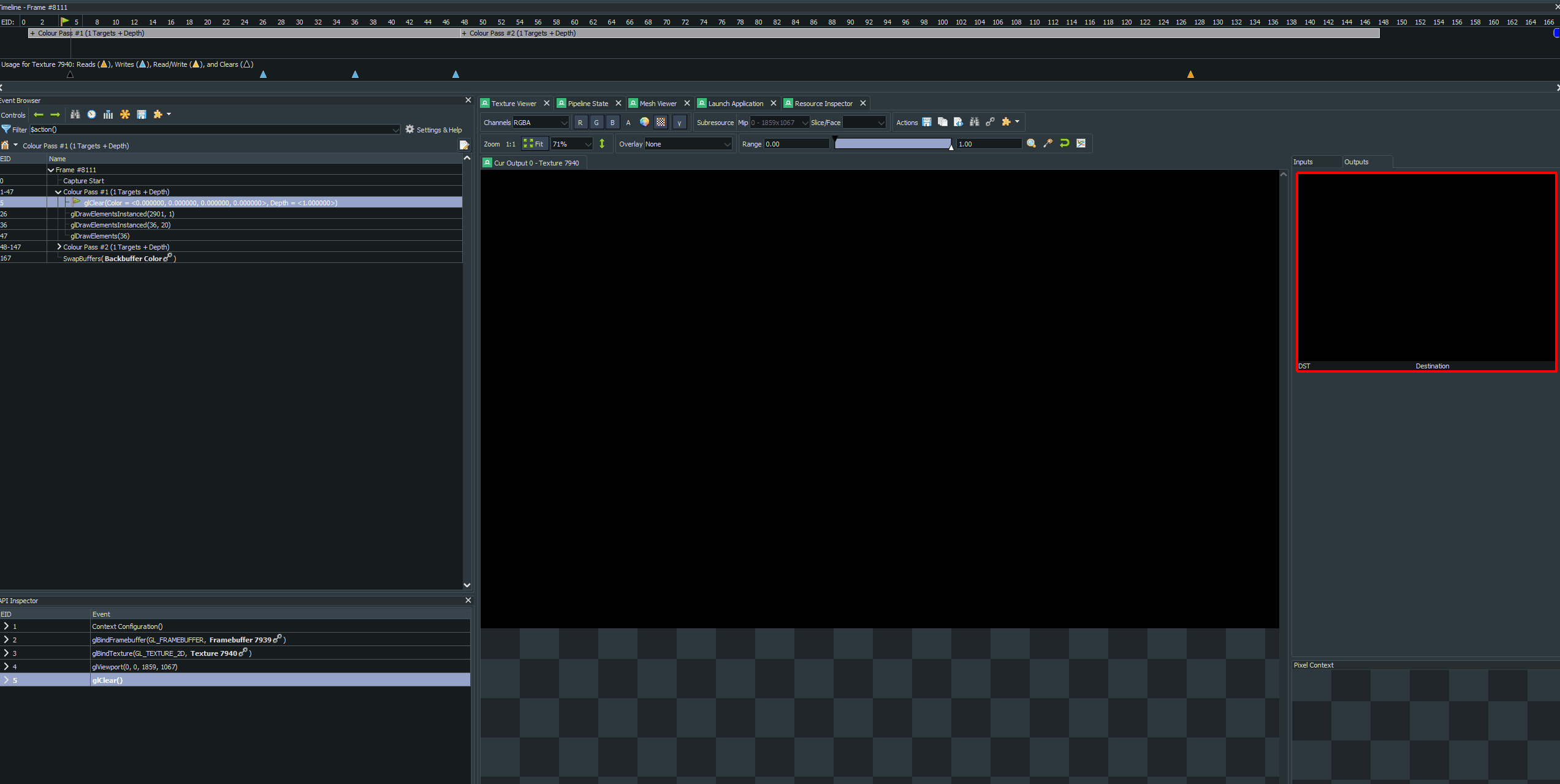A gif showing the render pass breakdown of the editor with a RenderDoc capture.