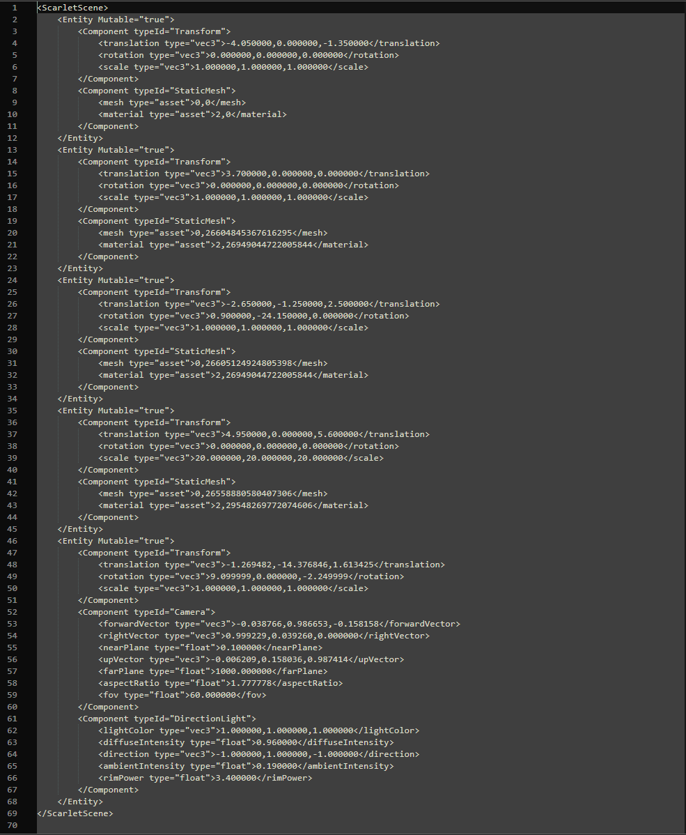 An example of the serialized scene for all the entities and components: